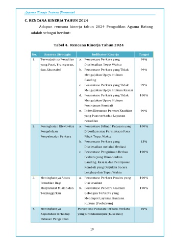 Adapun rencana kinerja tahun 2024 Pengadilan Agama Batang