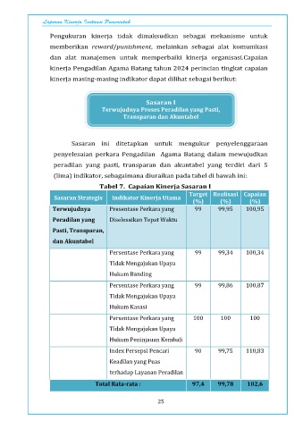 kinerja Pengadilan Agama Batang tahun 2024 perincian tingkat capaian