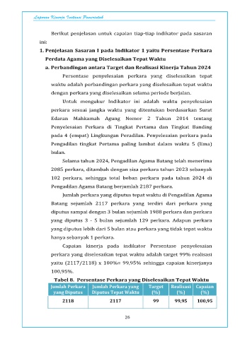 1. Penjelasan Sasaran I pada Indikator 1 yaitu Persentase Perkara