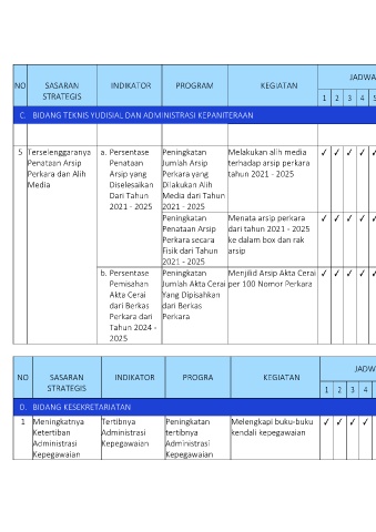 5 Terselenggaranya a. Persentase Peningkatan Melakukan alih media ✓ ✓ ✓ ✓ ✓ ✓ ✓ ✓ ✓ ✓ ✓ ✓ Arsip tertata rapi Biaya - Panmud