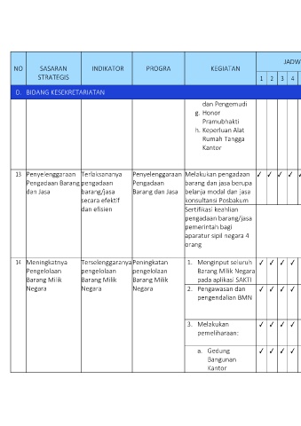 13 Penyelenggaraan Terlaksananya Penyelenggaraan Melakukan pengadaan ✓ ✓ ✓ ✓ ✓ ✓ ✓ ✓ ✓ ✓ ✓ ✓ Terselengaranya DIPA 04 Rp. Kasubbag