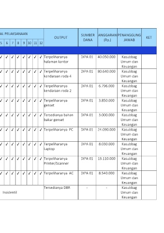 j. Pemeliharaan ✓ ✓ ✓ ✓ ✓ ✓ ✓ ✓ ✓ ✓ ✓ ✓ Terpeliharanya AC DIPA 01 8.540.000 Kasubbag
