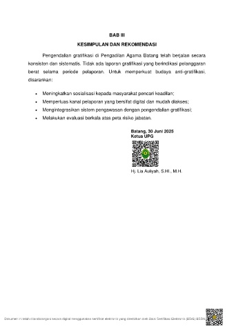 Pengendalian gratifikasi di Pengadilan Agama Batang telah berjalan secara